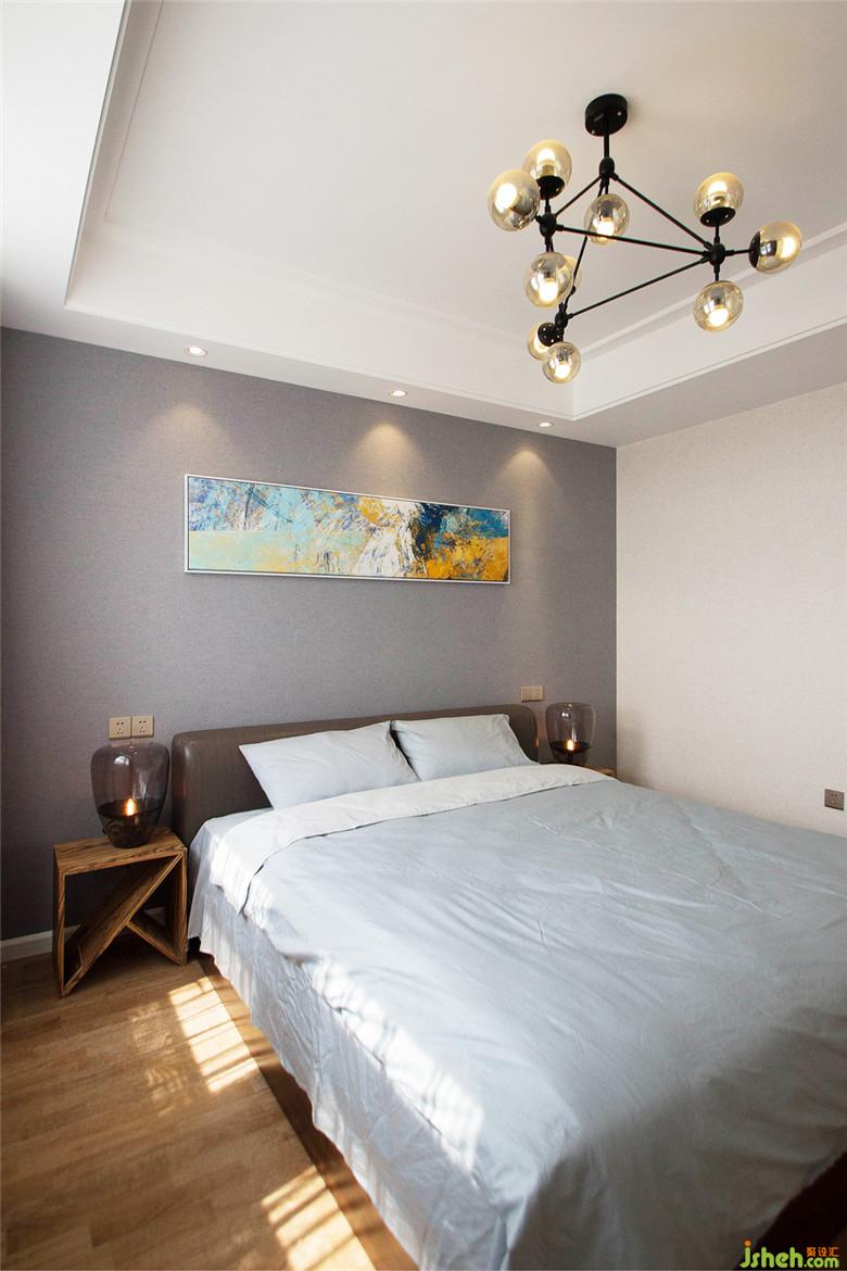 主臥室內(nèi)設(shè)計(jì)師使用配色更加清淡,營(yíng)造舒適的休息空間。