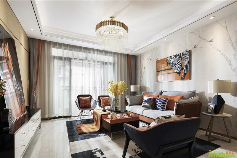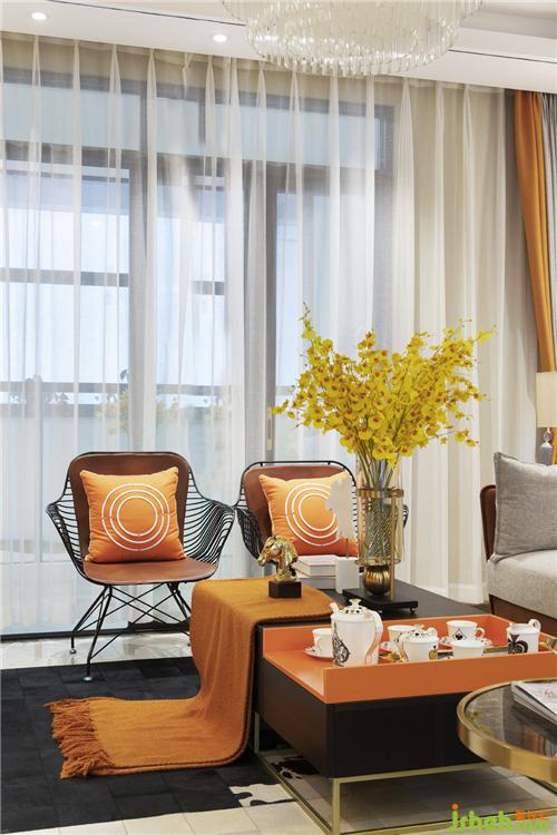 本案設(shè)計的風(fēng)格為現(xiàn)代輕奢風(fēng),在追求潮流的同時又想要家中保持溫馨的感覺。為了滿足時尚摩登感,在空間中搭入一些金屬、鏡面材質(zhì)進(jìn)去,使整體色調(diào)更顯明亮,再輔以亮色點(diǎn)綴,整體空間精致又不乏溫馨。橙色與藍(lán)色之間有幽微的碰撞,硬裝線條結(jié)構(gòu)的相互呼應(yīng),營造出與眾不同的空間魅力,其中有溫暖的冷靜、個性的簡約。樣板房設(shè)計