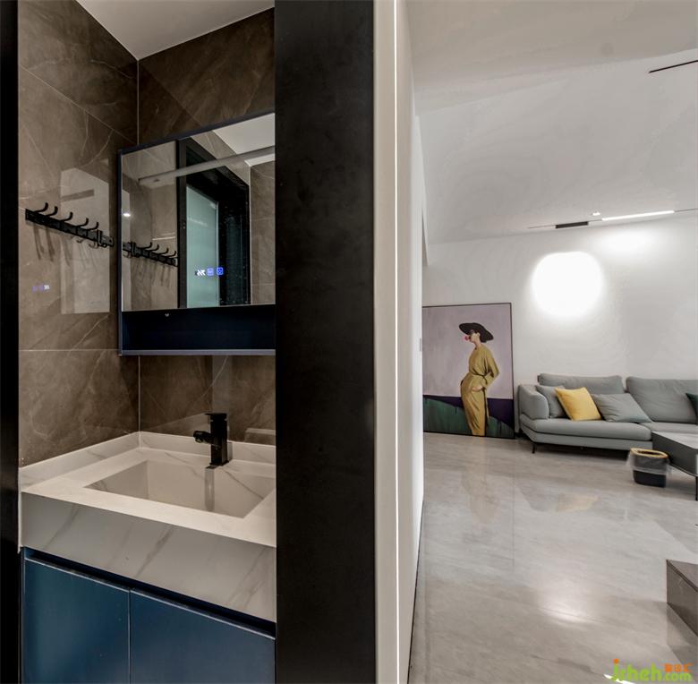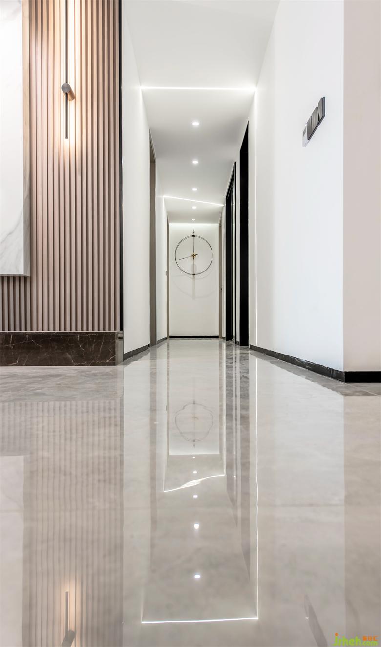 走廊作為緩沖區(qū),將公共區(qū)域和私密區(qū)域分離開來,裝修設(shè)計師極簡掛鐘與線性燈相互穿插讓走廊空間也擁有儀式感,散發(fā)出的安謐之意平撫著居住者的心靈,增添細節(jié)和氛圍的親和力。裝修