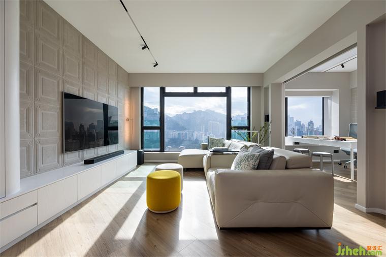 這對(duì)香港夫婦購買了一個(gè)面積為1,500平方英尺的公寓,該公寓已有租戶,并在租約結(jié)束后將其收回。該公寓已經(jīng)有近20多年的歷史,需要進(jìn)行翻新。廖奕權(quán)將公寓徹底剝離,但主要保留了原始的平面圖。然而,某些房間的性質(zhì)發(fā)生了變化,公寓設(shè)計(jì)其中三個(gè)臥室中的兩個(gè)變成了男戶主的藝術(shù)兼書房,而女戶主則有了一個(gè)獨(dú)立的家庭辦公室。