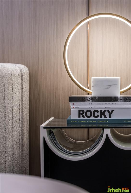 軟裝藝術(shù)設(shè)計(jì)繁簡(jiǎn)有序,亦有著自然流動(dòng)的節(jié)奏變換。客廳區(qū)域干凈簡(jiǎn)練,只以一個(gè)璀璨的金色藝術(shù)吊燈渲染空間氛圍。