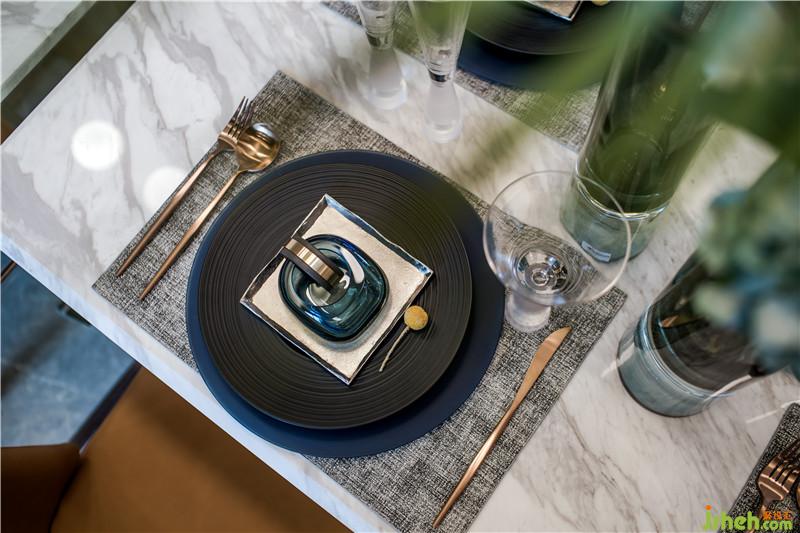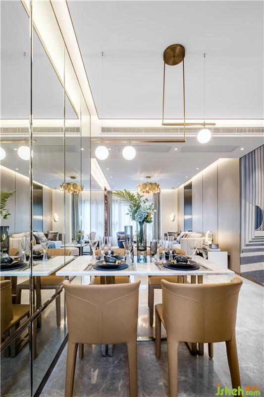 在最能體現(xiàn)生活儀式感的餐廳空間,金屬、玻璃和鏡面材質(zhì)的粲然光感完美交融,營造出空間的優(yōu)雅美好,凝結(jié)著都市生活的輕奢享受。