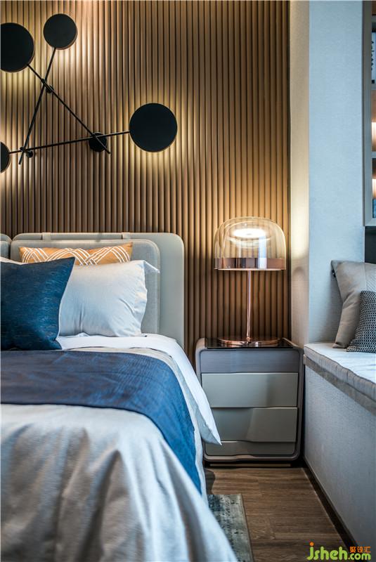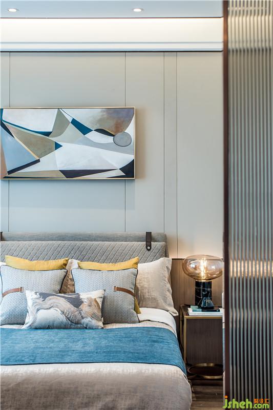 臥室空間設(shè)計融入了簡約的幾何色塊,散發(fā)著時尚溫馨氣息,通過抽象飾物和雅致配色,予人安心怡然體驗。室內(nèi)設(shè)計師