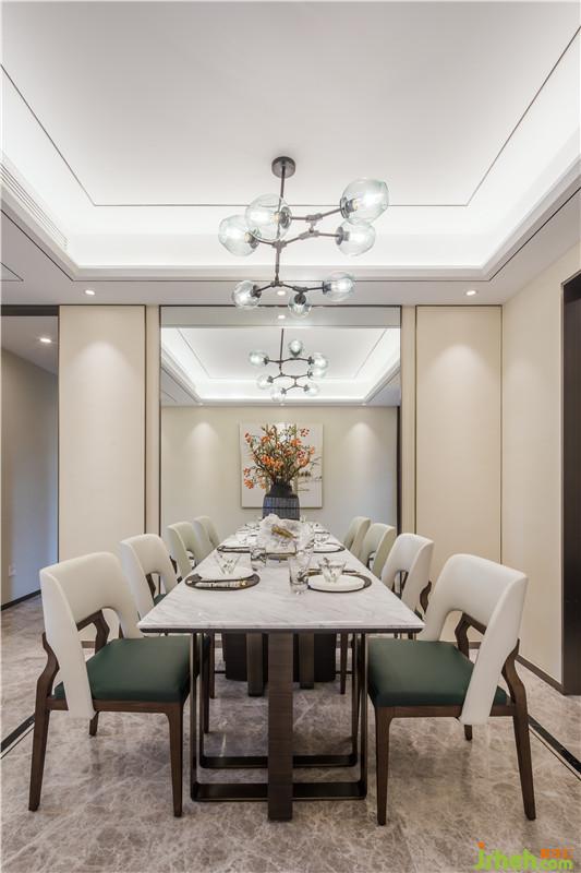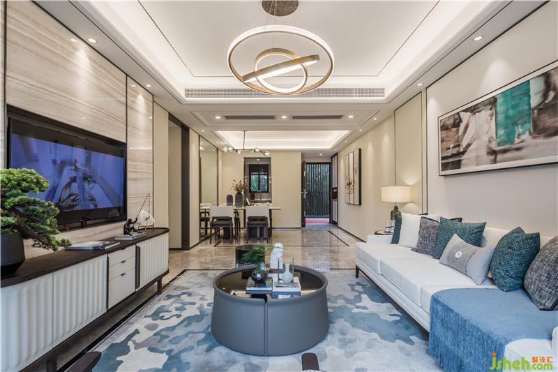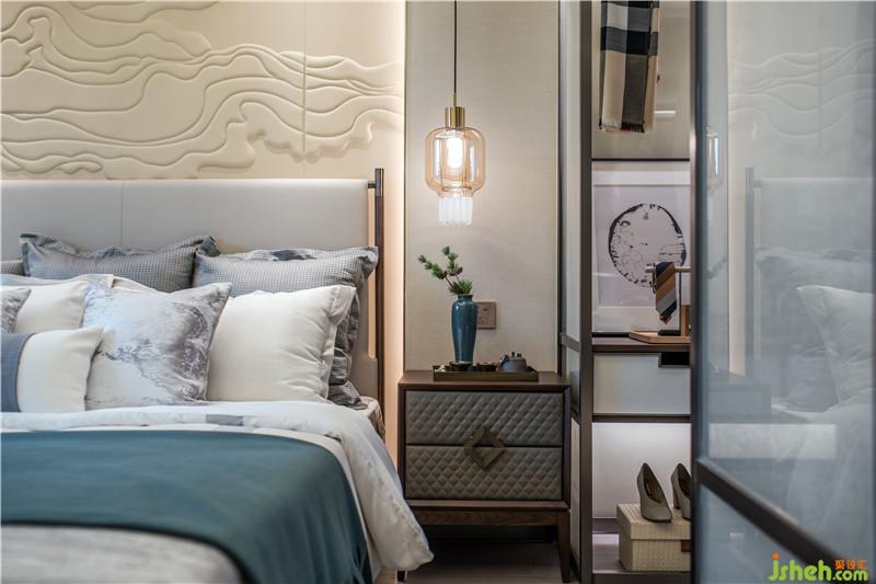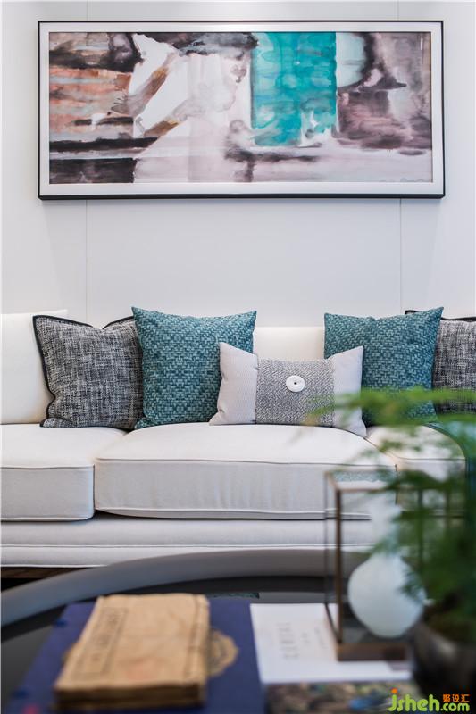 整體空間現(xiàn)代簡約素雅,以米灰色調(diào)為主,局部點綴耐看而自然的藍綠色,軟包多以棉麻、絲質(zhì)感面料,渲染清爽舒適的居家氛圍。