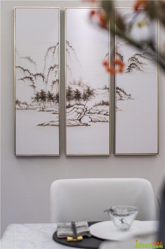 A戶型設(shè)計融入了當(dāng)代東方人文的設(shè)計語素,清雅的人文風(fēng)貌中,自然的生機感賦予空間更新的生命氣息。設(shè)計師認為:“傳統(tǒng)文化中有許多優(yōu)美和智慧,將他們活化運用到現(xiàn)代家居空間中,不失為一種提升生活品質(zhì)的方式,讓人們從匆忙壓抑中解放出來,重獲魚躍鳶飛的生機?!?