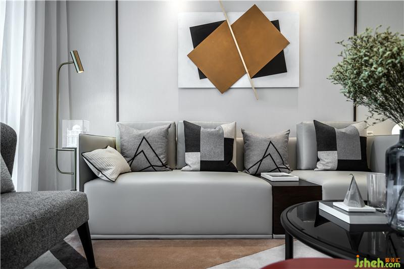 灰,左右不過黑白,不爭不燥、無需繁雜,E1戶型的軟裝以灰色作為基調(diào),黑與白貫穿始終,局部輔以跳躍的顏色,如亮黃,活躍整個(gè)空間的氛圍。樣板房設(shè)計(jì)