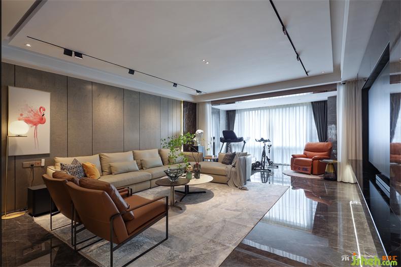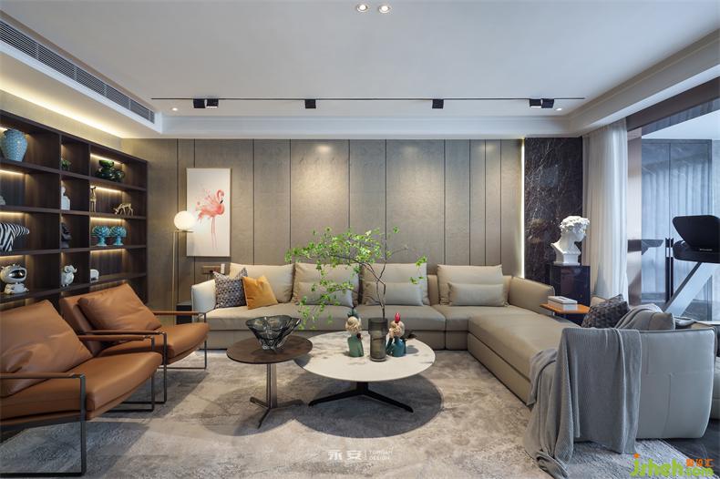 本案深圳豪宅設(shè)計(jì)風(fēng)格為現(xiàn)代輕奢風(fēng)格,采用時(shí)尚精簡(jiǎn)、低調(diào)內(nèi)斂的高級(jí)灰是用于家居裝扮的首選基調(diào)色彩,呈現(xiàn)優(yōu)雅魅力和精致大氣的視覺(jué)感官,符合人們對(duì)現(xiàn)代生活的審美需求。同理,作為潮流都市代表色之一的雀眼木色,居家設(shè)計(jì)中的運(yùn)用中,讓空間張揚(yáng)不浮夸、經(jīng)典且時(shí)尚,成為永恒不變的奢侈品味。