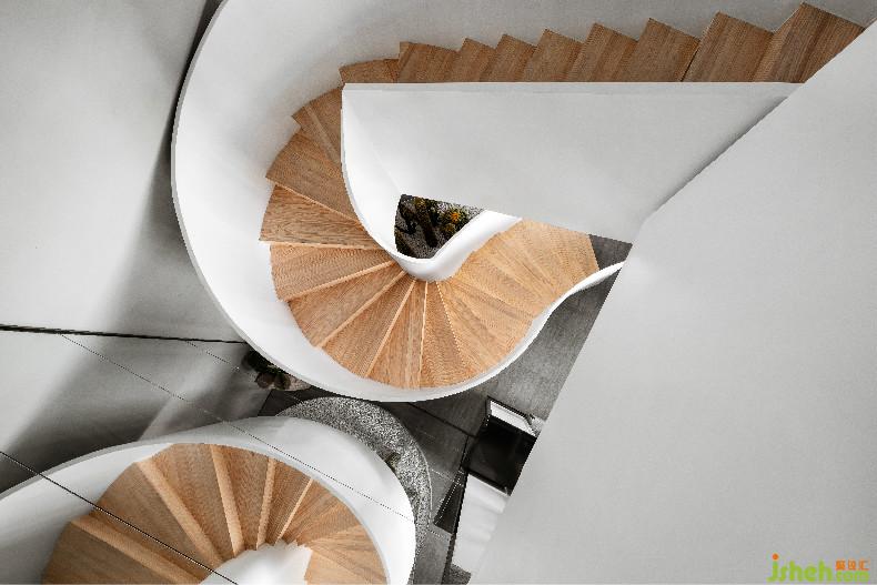 一二層通過(guò)一個(gè)優(yōu)雅的白色旋轉(zhuǎn)樓梯