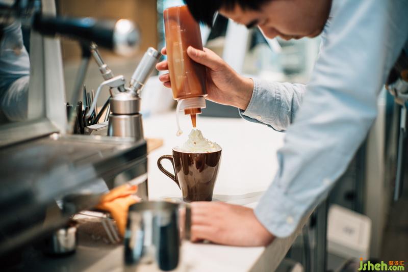 推開玻璃門,陽(yáng)光透過綠色玻璃照在屋內(nèi),空氣中彌漫著咖啡的香氣,暖色調(diào)的燈光,音樂舒緩的流淌……