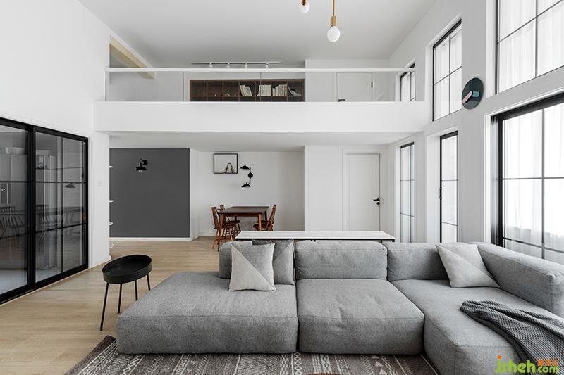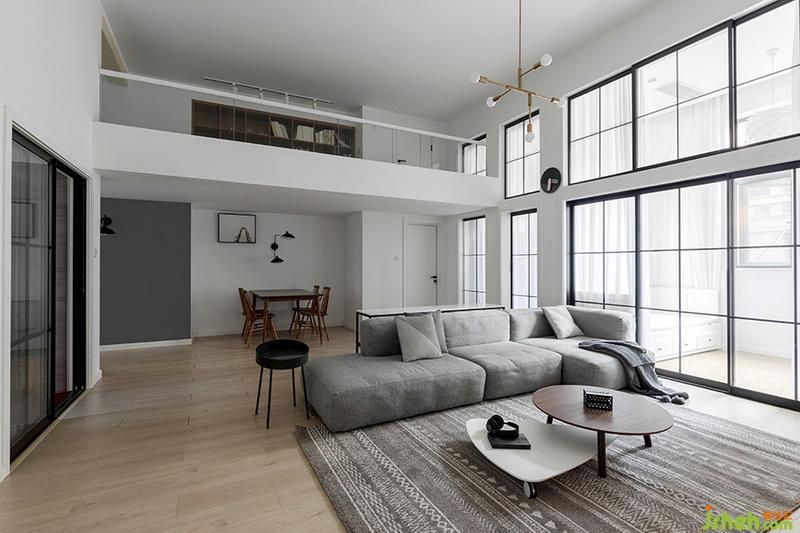 整體色調(diào)白色為底,灰色和黑色點(diǎn)綴+原木色系地板,維持一個(gè)平衡的視覺(jué)感受。