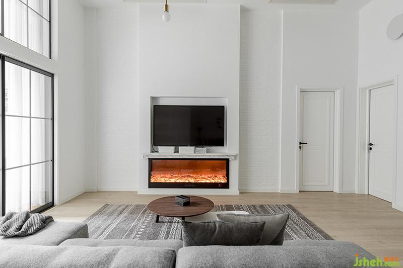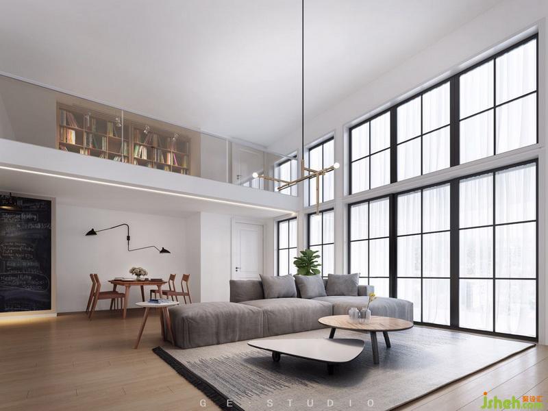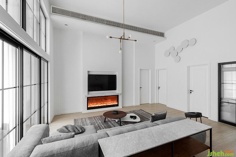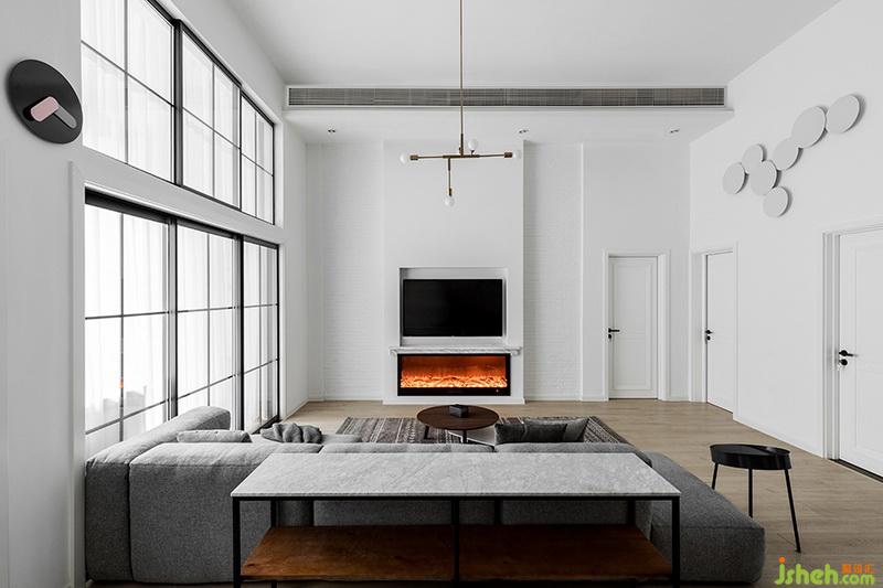 凸出電視墻形成視覺(jué)中心,縱向分割造型將層高優(yōu)勢(shì)體現(xiàn)的更為明顯。