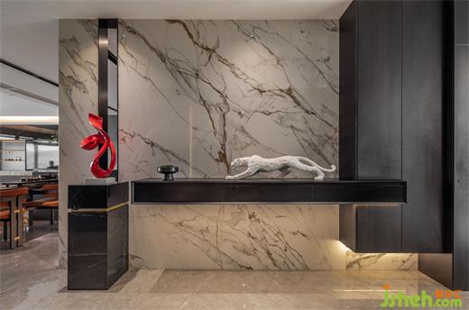 本案為現(xiàn)代輕奢風(fēng)格,業(yè)主是成功青年企業(yè)家,喜歡深色調(diào),深圳豪宅設(shè)計(jì)整體空間我們利用深色石材,金屬,及煙熏橡木打造沉穩(wěn)的空間品質(zhì)。