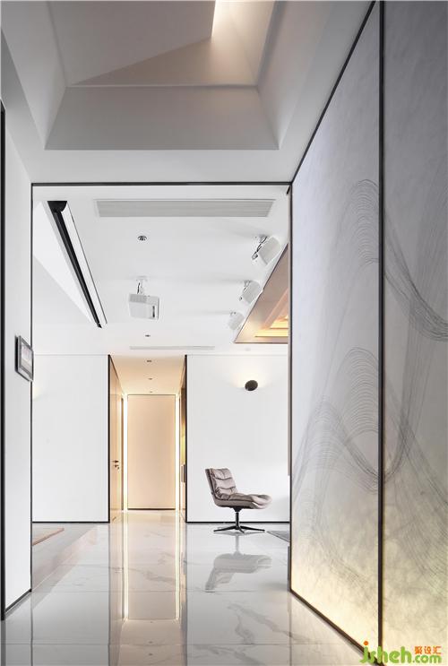 “奕賢居”由電梯廳入戶,拉開雙門看到眼前一幅背景,為一進(jìn):“見山是山,見水是水”的意境。