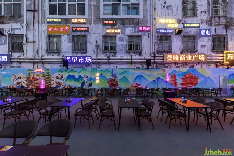 酒館的室內(nèi)環(huán)境現(xiàn)代而充滿歡樂,在深圳這個擁有著年輕血液的城市中開辟出一個。棋牌室設計師將其定義為一個不斷變化的環(huán)境,從而可以滿足一天內(nèi)人們晚上的不同需求,從小吃到宵夜和酒飲,為顧客們提供全天候的飲食,更為他們創(chuàng)造出一個全天候的共享式體驗空間和活動空間。這座小酒館充分利用了華強北的步行街,設置了一系列讓人想一探究竟的室外座椅。值得一提的是室外的霓虹燈,這個霓虹燈在整個酒館設計中建立了一個反復出現(xiàn)的主題:即將室外元素帶進室內(nèi),反之亦然。使夢人回華強北1983那個基工建設最火熱的年代