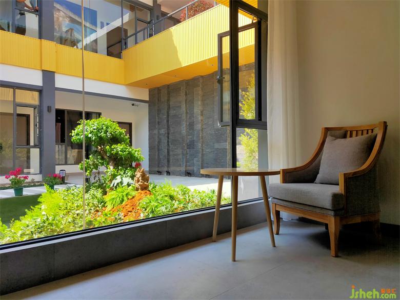 桂林民宿設計定位為新中式,同時結(jié)合傳統(tǒng)中式庭院和四合院設計理念,旨在打造桂林城中心,鬧中取靜的合院式度假酒店。項目整體設計以大面積留白為主,輔以深淺木色護墻板和木地板作為搭配,根于桂林氣候條件特地,為了保證一樓防潮防霉,所有墻頂?shù)厮捎玫牟牧隙挤蠂揽恋姆浪莱狈阑饦藴剩?樓以上則用溫和的淺色墻布和整體定制墻布為主,整棟建筑劃分出多處休閑休息區(qū)域,保證客人能在酒店內(nèi)就能享受到安靜放松的氛圍,足不出戶也能輕松度假。整個酒店的家具全部采用定制方案,造型古樸典雅,原木色的家具能很好的配合房間的設計配色。庭院打造為該次項目設計重點,在舍棄房間數(shù)量的情況下,把整個中庭區(qū)域保留,在有限的面積內(nèi),實行造景設計,配合青石板,魚池,綠植,天井等元素,也成就了結(jié)合四合院的設計理念,成為休閑放松,打卡拍照的亮點。