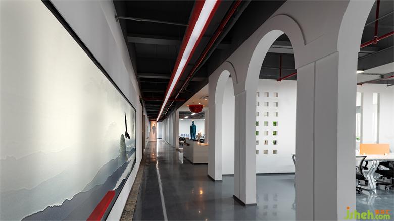 辦公室設計師引用閩南建筑的傳統(tǒng)元素為設計脈絡,以新時代的審美氣質,設計和構造一個新的空間體驗感受,作品整體空間呈現(xiàn)出獨特的對稱美,亦不乏張弛有度的變化,將閩南的燕尾脊、五行山墻、騎樓、花磚等元素加以提煉,運用于空間,使空間不經意間流露出兼容并蓄的閩南精神。整體設計裝飾簡潔,通過大面積的灰色和白色,即純凈和簡約的色彩,形成了最具沉穩(wěn)理性的氣質,中間連貫穿插的中國紅,不僅讓視覺溫潤,也點明了“一帶一路”的精神內涵。