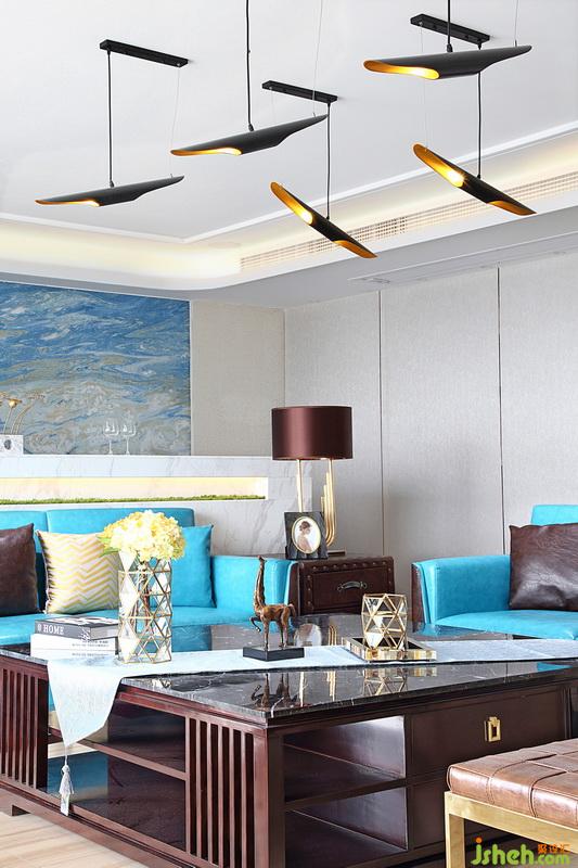 本案業(yè)主回歸兒時家鄉(xiāng),希望自己的家干凈,純潔,環(huán)保。大片的落地窗,讓藍色的天空飄進客廳,溫暖的陽光照在身上,是多么的舒服??蛷d墻壁的軟磁,是兒時玩的泥土,地磚的花紋,猶如門前的小溪流水,藍色的沙發(fā)坐墊同吧臺后的海闊天空背景相得益彰,一切的一切,是那么的舒服。身在其中,就猶如置身于藍天白云中。簡潔的墻壁,在玫瑰金的裝飾下,讓空間不再單調(diào),反而有了一些高貴。