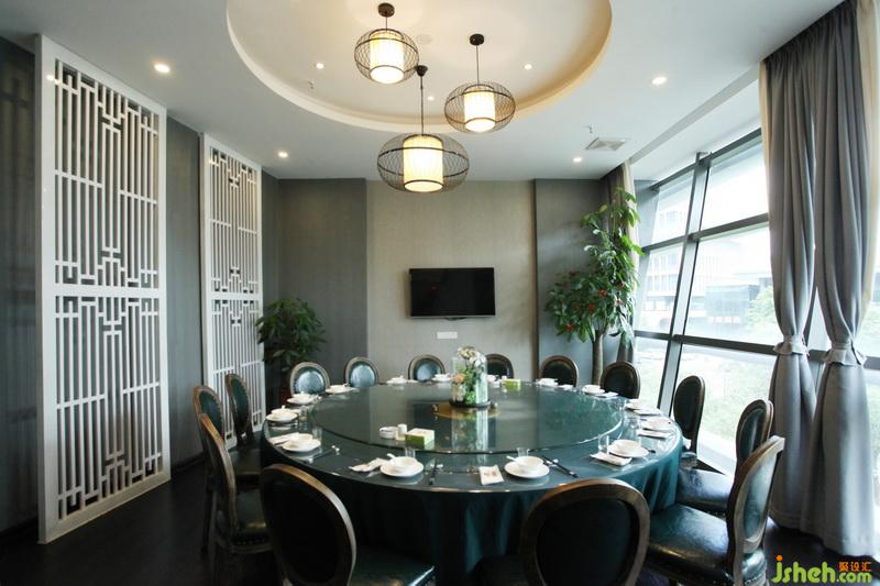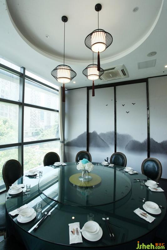 本案其實是休閑中餐廳,但業(yè)主希望改變餐廳設(shè)計的風格,既能在有限的資金下,符合當下年輕人的潮流。于是,在公共區(qū)域,餐廳設(shè)計定位為工業(yè)風格,同金屬玻璃幕墻相得益彰,鍍鋅方管焊接的隔斷刷成黑色,深綠色的皮沙發(fā)等都是深色系,故采用玻璃球的吊燈,讓視覺上有個反沖。夜晚,這些個球燈亮起,猶如星光點點。包廂的做法,是新中式的元素疊加,水墨畫的隔斷及竹編的吊燈,使整個包廂凸顯山水人文氣息。