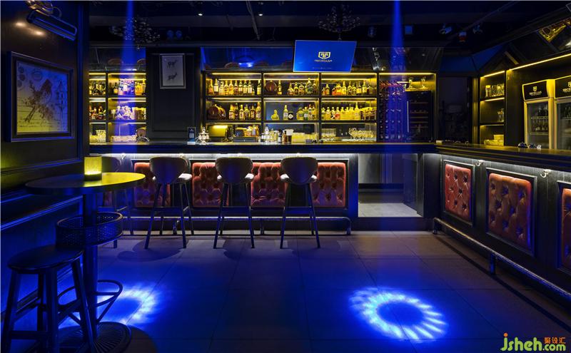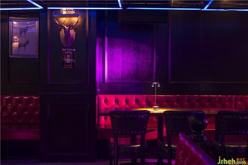 現(xiàn)代社會的消費者,在酒吧場所進行消費時往往帶有許多感性的成分,容易受到環(huán)境氛圍的影響,所以突出舞臺燈光不同的變化、不同的光束、不同的色彩能直接觸動觀眾的心,色彩,燈光也是營造氛圍的重要手段,秘窖酒吧以沉穩(wěn)的灰藍色為主,以具備親和力的灰褐色為輔,其中穿插少量亮色,搭配紅色皮革軟包體現(xiàn)穩(wěn)重中的活力。這幾種顏色都有很強的現(xiàn)代感,具有沉穩(wěn)、靡麗的視覺感,彰顯了整體風格的頹廢與華麗。