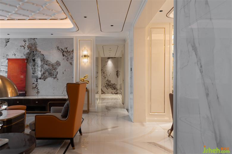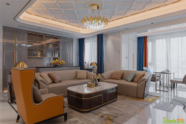 本大平層設(shè)計(jì)位于五緣灣核心地段,屬于精品大平層戶型,設(shè)計(jì)風(fēng)格以簡(jiǎn)歐輕奢為主。設(shè)計(jì)師在顛覆傳統(tǒng)的歐式風(fēng)格中,融入混搭與現(xiàn)代輕奢元素后,更加凸顯傳統(tǒng)與現(xiàn)代的魅力。主體采用暖白色調(diào),運(yùn)用素雅灰作為搭配色,少量橙色、藍(lán)色作為點(diǎn)綴之筆,簡(jiǎn)歐與現(xiàn)代輕奢的結(jié)合,使效果上沒(méi)有像傳統(tǒng)歐式那么豪華,但又不會(huì)太簡(jiǎn)單,簡(jiǎn)約中透出精致和大氣之感,也映襯出主人不凡的生活品味。
