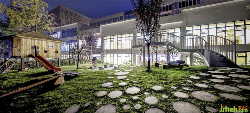 Following the circle stepping stones toGuangMo, children can have a closer contact with nature in the outdoor environment with full of grass, sunshine, earth, sand and stones, and have a variety of interesting experiences.The different functions and sizes of children's amusement facilities ensure the diversity of interests and ensure that children of all ages can find new inspirations here. Bunker, steppingstones, plants with four distinct seasons provide a variety of education methods. Teachers inschool often take children to do things themselves, playing with sand, pinching mud, planting trees, picking fruit, getting close to nature and releasing their authenticity.The presence of hand washing bowl allows children to develop habits of cleaning after playing and adds a sense of tranquility to theschool. Here, the plants with four seasons let children feel the coming and going of different solar terms directly.