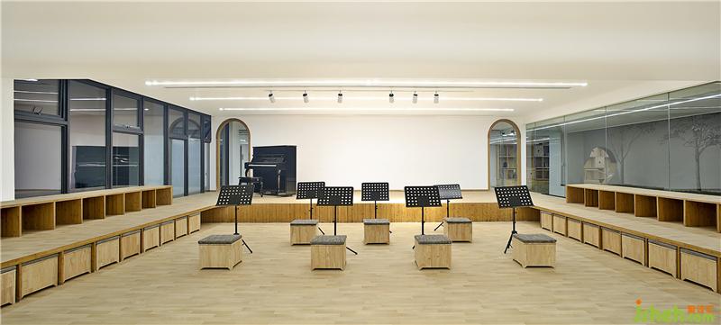 CROX闊合設(shè)計(jì)的每一間班級(jí)教室都配備了餐廳、臥室與洗手間,它們就像孩子的另一個(gè)家,在盡情地玩樂過后可以放松小憩。園內(nèi)設(shè)置了多功能教室、親子手工室、引入戶外景觀的半戶外活動(dòng)室,無論是舉辦傳統(tǒng)節(jié)日慶典,還是為一個(gè)孩子慶祝生日,在光墨書院里都能找到合適的空間。每一個(gè)空間都與自然相聯(lián)通。孩子們推開窗戶,手一伸,就能接觸到戶外的風(fēng)。而大片的落地玻璃窗又把室外美景和歡樂帶入教室,孩子們可以在遮光簾上進(jìn)行自由創(chuàng)作,啟迪心靈,讓自然聯(lián)通想象,將想象留給自然。裝修公司