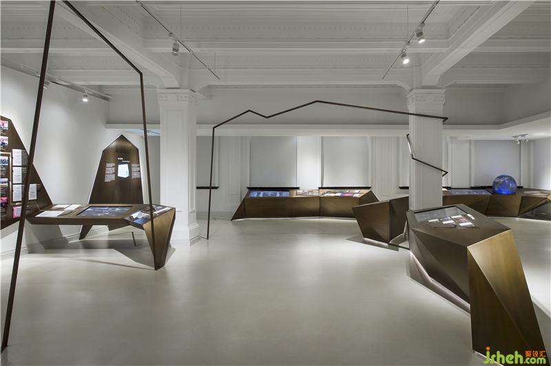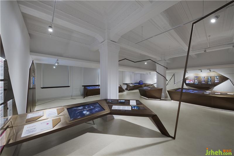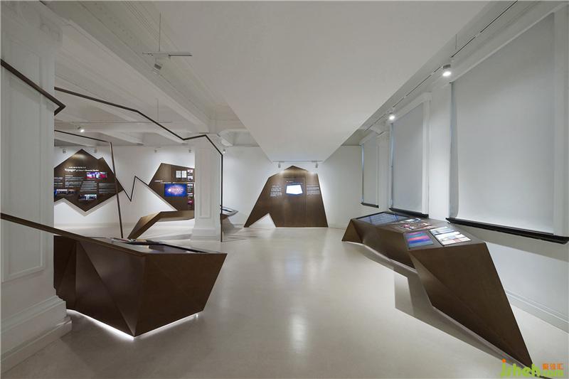 CROX闊合團(tuán)隊通過綿密的策展會議,學(xué)習(xí)復(fù)雜龐大的金融清算專業(yè)系統(tǒng),分析建筑社會文史,逐步建構(gòu)屬于上海清算所的展覽定位,提出WATCHER(守衛(wèi)者)&VOYAGER(航行者)的策展命題。不同于一般的展覽策劃邏輯,清算所展示館透過WATCHER&VOYAGER兩種觀點(diǎn)傳達(dá)了上海清算所豐富的專業(yè)及歷史含量。設(shè)計層面取材兩英文單詞的字首,以連續(xù)的W和V字母形象串接一道趨勢線,形象地將其整合為金融業(yè)的通用視覺語言,穿梭在百年建筑空間中,時為主體,時為側(cè)軸,營造展覽的時代動感,在不同的展示區(qū)域,大量運(yùn)用數(shù)碼技術(shù),將復(fù)雜的金融業(yè)務(wù)原理轉(zhuǎn)換成時尚的視覺符號與互動科技。整座空間成為一座大型的裝置藝術(shù),包含入史料文物、影像紀(jì)錄、實(shí)體模型、銅雕紀(jì)錄等等,運(yùn)用材質(zhì)、燈光、文史論述、數(shù)碼設(shè)計、空間設(shè)計等跨越不同的時代的設(shè)計符號,喚醒參觀著潛在文化印象,觸發(fā)認(rèn)同感,形成極具張力的金融文創(chuàng)體,屬國內(nèi)少見的創(chuàng)新展示型態(tài)。裝修設(shè)計