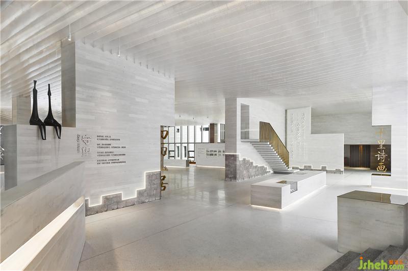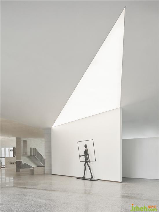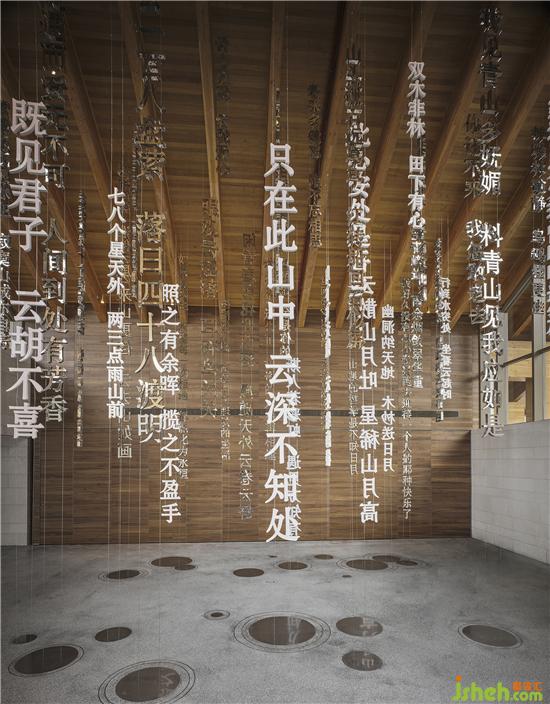吊掛著的文字裝置如瀑布般從斜屋頂傾瀉而下,在窗外陽光的照射下,為高挑壯闊的空間注入靈性,時(shí)明時(shí)暗,為人們開啟一段浪漫的藝術(shù)之旅。定期舉辦的藝術(shù)展覽與設(shè)計(jì)分享會(huì),悄悄地將藝術(shù)融入到生活之中,給人們帶來直觀而深刻的藝術(shù)體驗(yàn)。藝術(shù)館設(shè)計(jì)