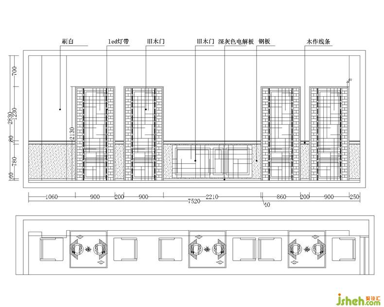 本案為了打造出一種輕盈復(fù)古的用餐環(huán)境,在造型設(shè)計的構(gòu)圖中,立面上采用回收的老房子舊木板與舊門,再通過鐵件熱軋板的相結(jié)合,營造出一種復(fù)古又粗獷的感覺,環(huán)境中提倡空間一時間的新概念,構(gòu)成了設(shè)計文化中多元化的傾向,尋找新的設(shè)計語言。室內(nèi)設(shè)計師