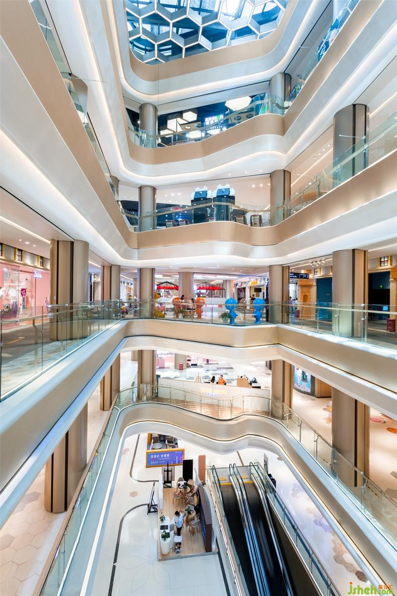 六邊形花窗是蘇州園林的視角,適宜的距離和角度,框取自然之美,或掩映自然之美,生活便因此有了詩意。設(shè)計公司中庭天花以六邊形整齊排布的幾何圖形為裝飾,與樓層天花上六邊形的花瓣,進行著陽剛與陰柔的對話。
