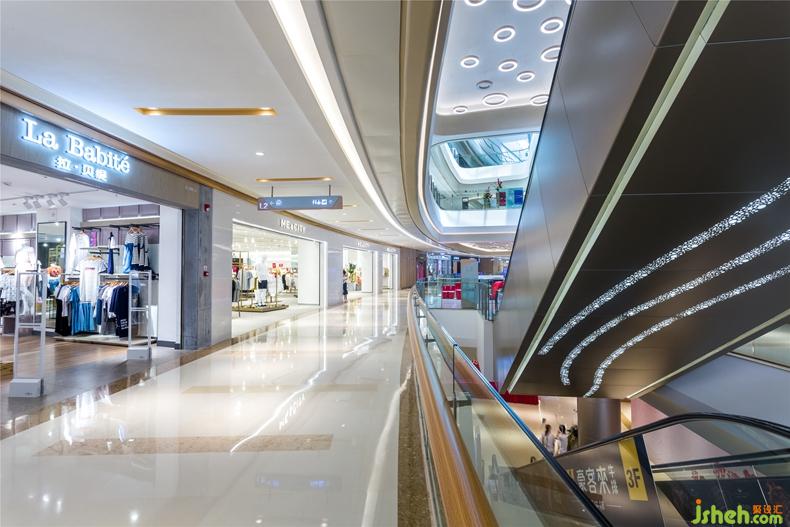 依照建筑的形式,設(shè)計(jì)公司改造了公共通道形成流暢的商業(yè)動(dòng)線,打通平面與垂直空間的連接,讓消費(fèi)者舒適的在各個(gè)店鋪間流連。我們從重慶的山形地貌、臺(tái)階街巷中抽象出綿延的曲線、整齊而有節(jié)奏的排線構(gòu)建出整體空間的基本形態(tài),還原重慶獨(dú)有的空間感受。