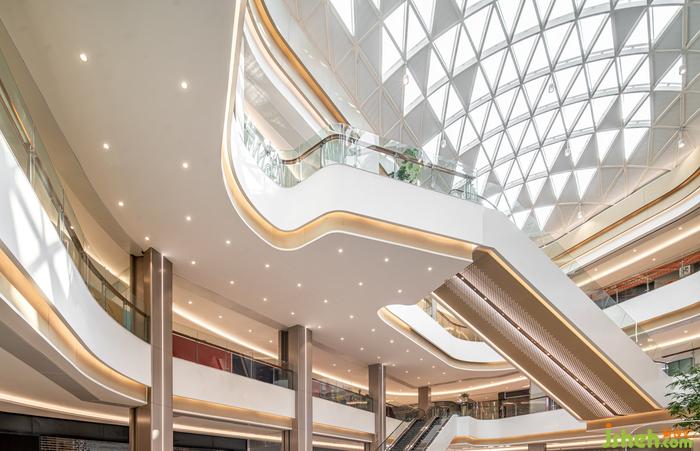 空間整體以星云白為基調(diào),輔以溫暖的棕色系,宛如一杯散發(fā)著馥郁清香的奶泡拿鐵,購物中心設(shè)計讓空間充滿甜蜜的氣息。生活的醇香彌散,星河的夢想在空間中演化,天花、扶梯、中庭等建筑結(jié)構(gòu),有機融合星軌的線條,與幾何排列的星幕光源,營造出簡潔、經(jīng)典、時尚的空間氛圍。