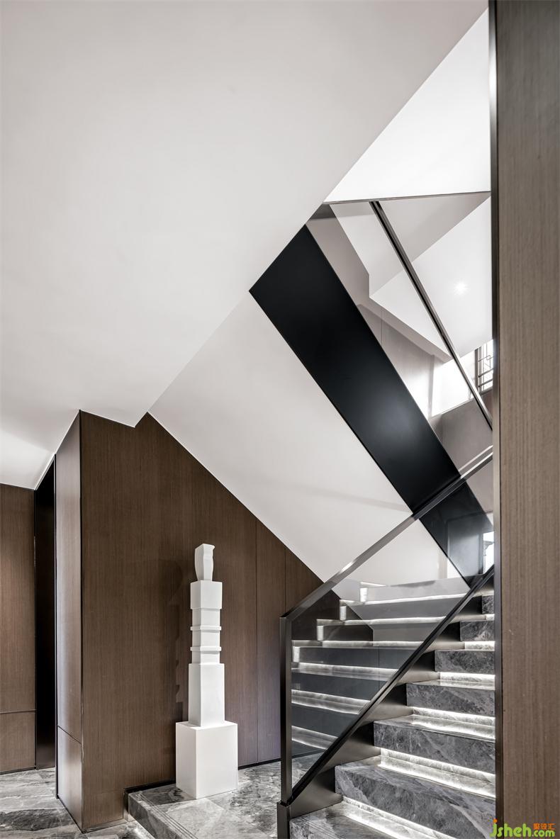 木質(zhì)與玻璃、鋼的微妙結(jié)合,頂層復(fù)式設(shè)計(jì)打破了原有混凝土結(jié)構(gòu)的笨重感,半通透的玻璃護(hù)欄讓視覺得到舒展,與大面積的窗戶墻呼應(yīng),輕盈通透,自然的氣息在空氣中流動(dòng)。