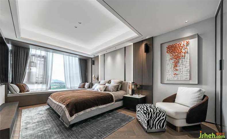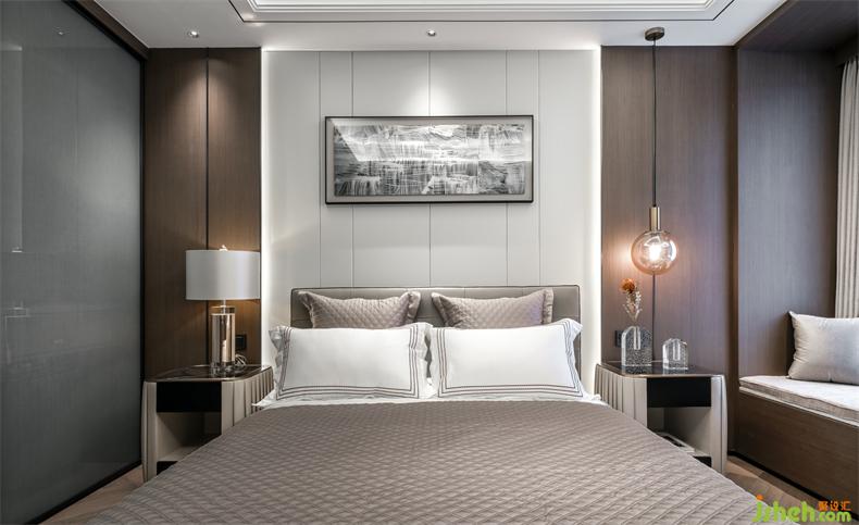 長(zhǎng)輩房,感受到的是獨(dú)處時(shí)的平和寧?kù)o,頂層復(fù)式設(shè)計(jì)更偏向于中式現(xiàn)代風(fēng),用實(shí)木、皮質(zhì)、棉麻等材質(zhì)填充視野,無(wú)主燈設(shè)計(jì)讓光影更柔和自然,突出舒適宜居的氛圍感。