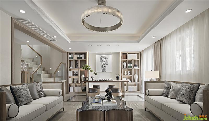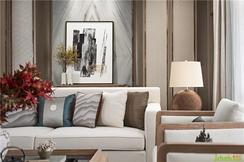 客廳大氣開闊,沒有中式的沉重壓抑,不是純粹的元素堆砌,將清新卻不失典雅的原木色與現(xiàn)代元素結(jié)合在一起。保留中式對(duì)稱,以現(xiàn)代人的審美和功能需求打造富有傳統(tǒng)韻味的客廳空間。