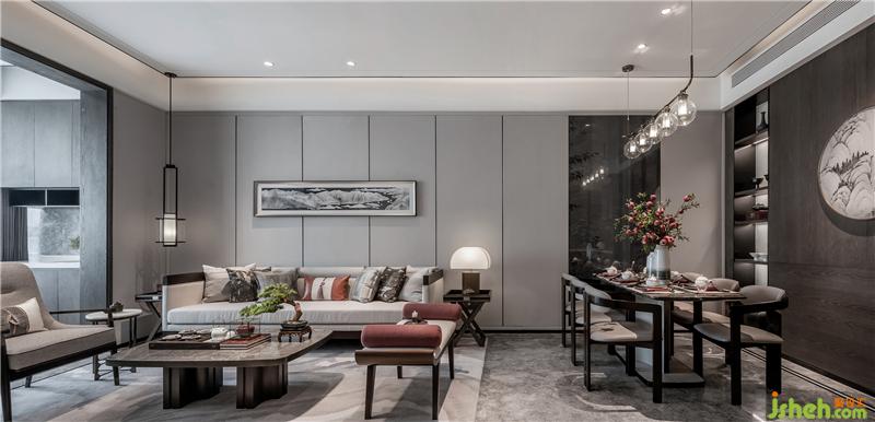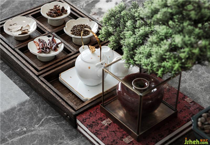 平靜的詩(shī)意空間里展開(kāi)的是一幅從唐詩(shī)里復(fù)刻下來(lái)的畫(huà)卷:溫茶煮酒,三五好友談古論今。山水之道歷來(lái)是中國(guó)文人熱衷的話題。山水,是真正屬于中國(guó)人的精神世界。沙發(fā)背景的配畫(huà)以及餐廳和臥室都有它的身影,它們?cè)谀瑹o(wú)言中締造出居室的文化意境。