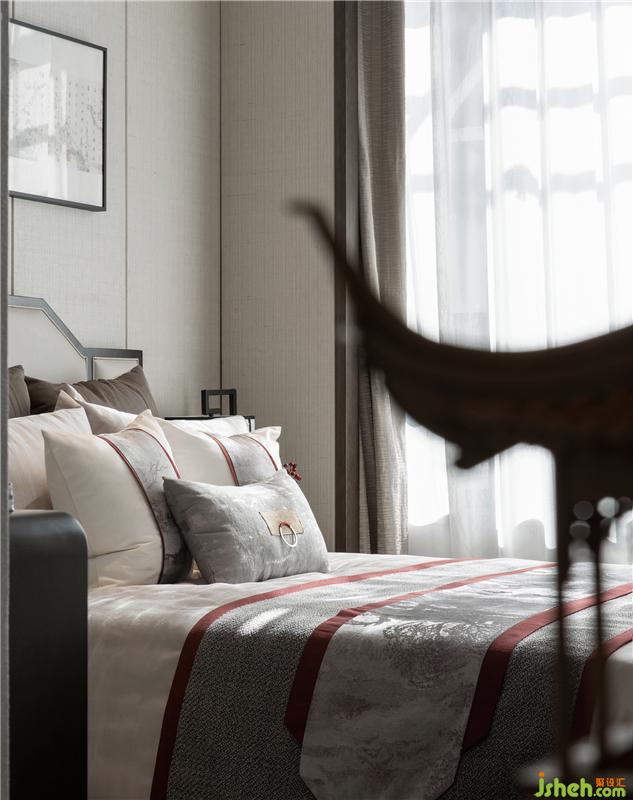 臥室在色彩方面秉承了傳統(tǒng)古典風(fēng)格的典雅和華貴,樣板房設(shè)計(jì)在配飾的選擇方面更為簡潔,更加流暢地表達(dá)出傳統(tǒng)文化中的精髓。為了給增添幾分暖意,飾以精巧的燈具和雅致的掛畫,使整個(gè)空間在濃濃古韻中滲透了幾許現(xiàn)代氣息。
