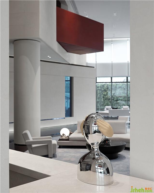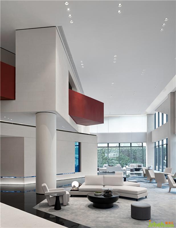 墻體結(jié)合水平方向的橫挑,除了自身的顏色以及自然的肌理,溫暖了空間的色差,捕捉著一天當中光影的變化。售樓處裝修設(shè)計平衡了空間中的色彩對比。
