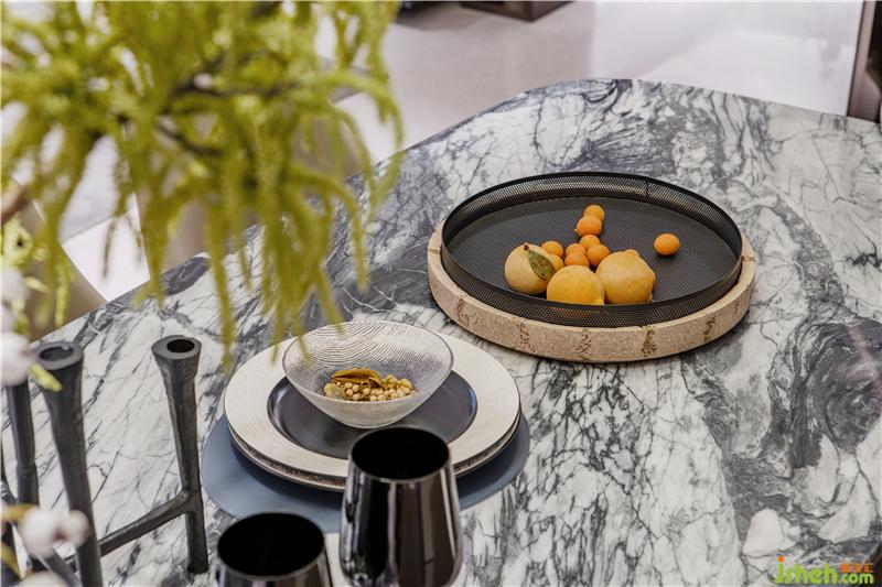 意趣在空間中無所不在,大理石質感的餐桌,現代雅致的餐桌椅,搭配一盞簡約的吊燈,呈現出優(yōu)雅舒適的用餐氛圍,而墻上的裝飾畫,讓空間更有想象藝術感。游歷其間,有如娟娟如洗的自然清新、有如氣質韻成的情濃境深。