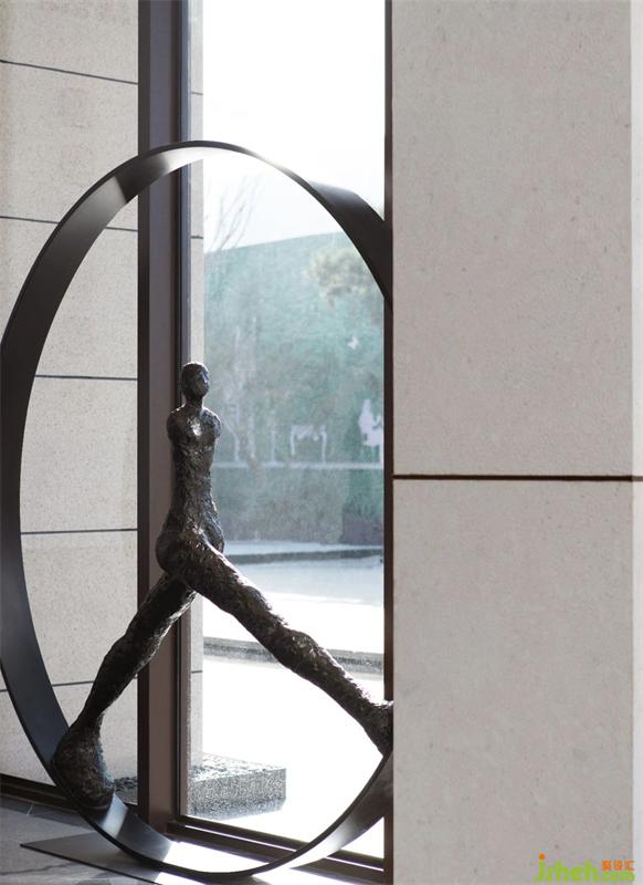 此處為入門處裝置背面為玻璃 ,利用玻璃的通透制造與自然光影的結(jié)合,利用雕塑自身的形態(tài)打造光影的靈動。