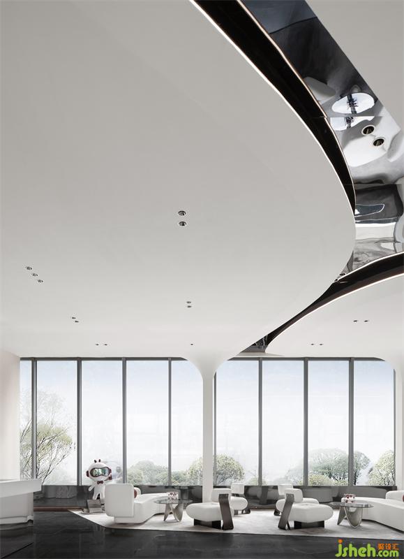 一個成功的藝術IP在流行文化盛行的年代可以迅速吸引觀眾,空間引入了“IP”的概念,將“藝術”與“IP”結合,營銷中心設計師選取“金小瑞”形象作為靈感展開設計,通過形體、材質和光影的塑造,結合多元化復合型的體驗模式,將售樓處打造為潮流的地標地,在每一個客戶會逗留的位置安置生動的互動場景。讓售樓處成為年輕人追逐時尚、向往自由的聚集地。