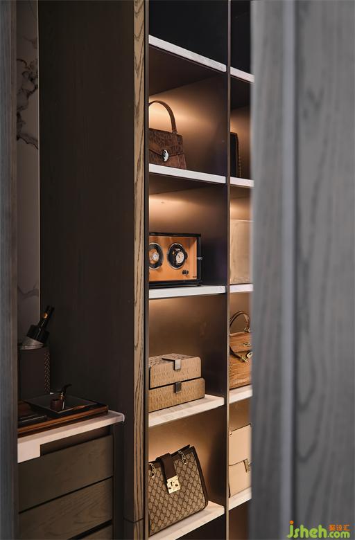 空間呈現(xiàn)更多以開闊及開放式的格局,收納和展示功能的秩序感一覽無余,多點(diǎn)位燈光延續(xù)了極簡的風(fēng)格,偏暖色系的光線又強(qiáng)化了視覺效果,滿足了對(duì)于精致生活品質(zhì)的全部向往。