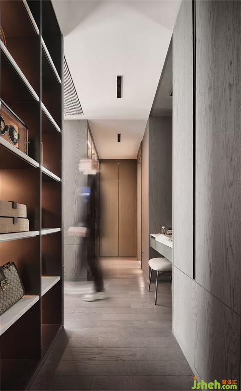 衣帽間與臥室的貫通,是空間延伸后的大氣磅礴,也搭建起了兩個(gè)空間互動(dòng)的更多可能性。