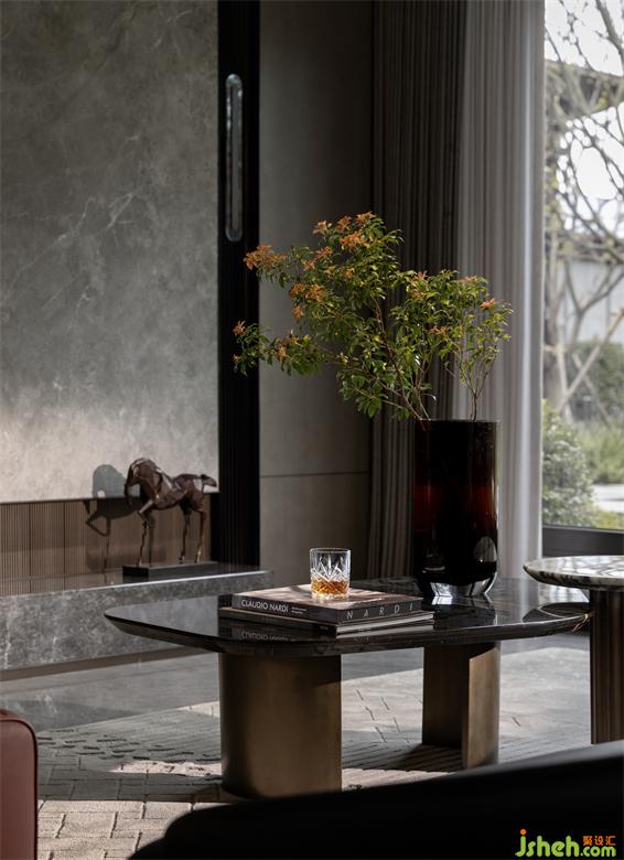 工藝精巧的大理石茶幾配以雕刻圓潤的棕紅木馬,為休憩場域注入趣意的同時,亦透出藝術(shù)與美學(xué)。