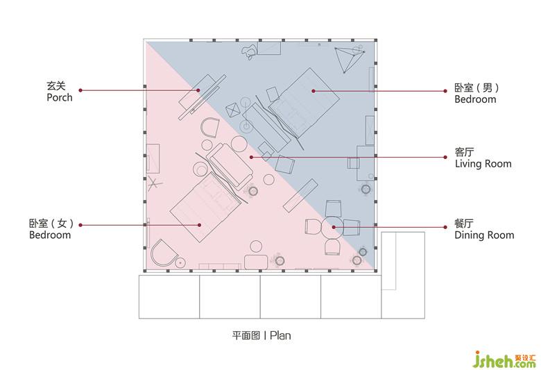 僅60㎡方寸之間,對角線分隔兩個世界,割離而交織,粉與藍的碰撞在講述著什么樣的故事?吸引著人們去一探究竟。零壹城市攜手國內知名軟裝設計采購平臺美間科技,受2019摩登上海時尚家居展之邀,于Homeplus棲居·實驗室版塊打造“共享空間實驗室”,一起探索當下社會關注的人類居住問題,共同探討“年輕人共享居住”的解決路徑,并進行實景展現。