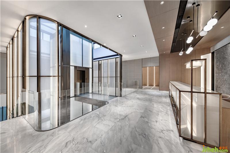售樓處裝修設(shè)計隨意選擇樓梯或電梯對空間進行探索。