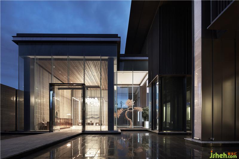 入口接待處茶亭搭配山水紋夾絲玻璃