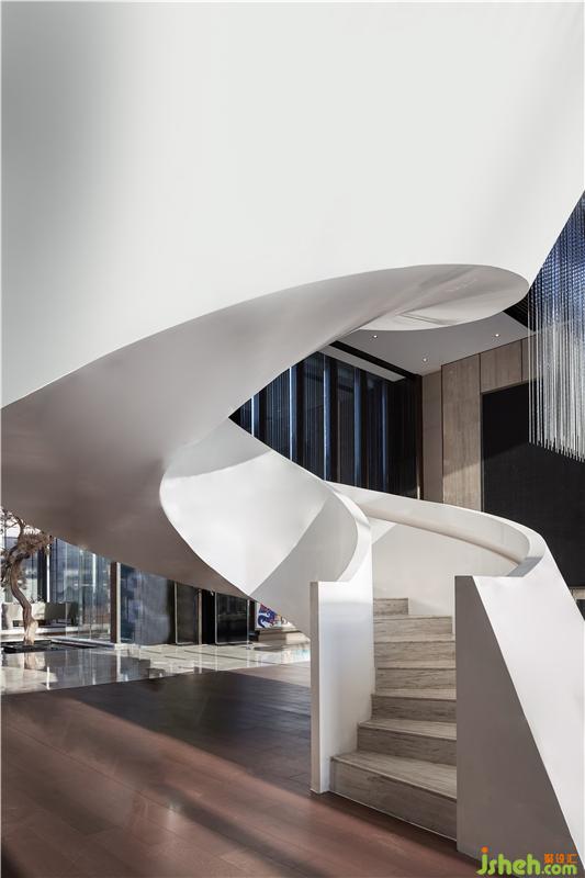旋轉(zhuǎn)樓梯似泉涌的姿態(tài)向上延伸