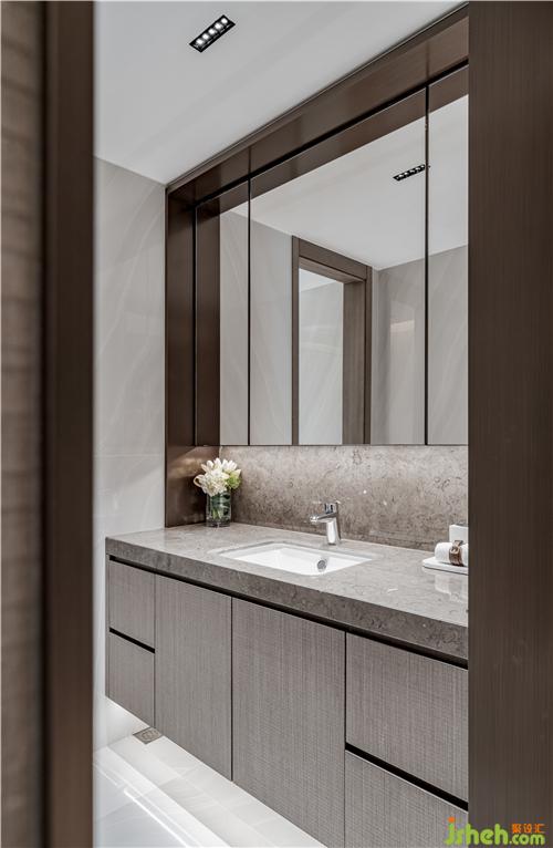 主臥在簡約的基礎上增加了更多精致奢華的元素,背景墻面豎向分割向上拉伸了空間尺度。不同明度和飽和度的暖棕色營造寧靜舒適的氛圍。