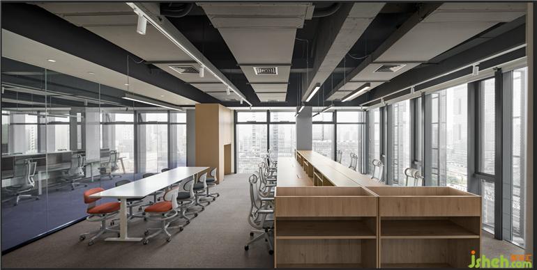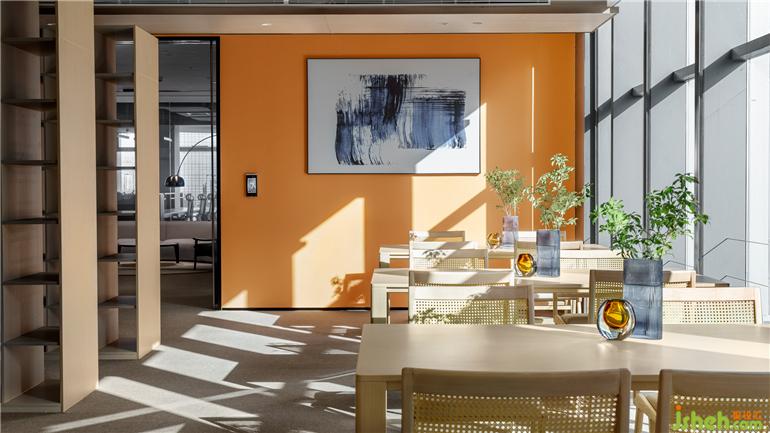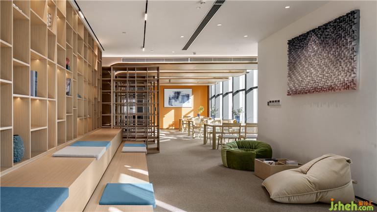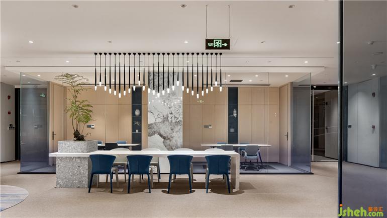 該方案整體的設(shè)計(jì)以原木設(shè)計(jì)搭配空間的黑白灰色調(diào)為主調(diào),辦公室設(shè)計(jì)整體的方案設(shè)計(jì)考慮到空間視野的開闊以及利用到室內(nèi)采光的設(shè)計(jì)效果。設(shè)計(jì)師通過簡(jiǎn)約的設(shè)計(jì)手法運(yùn)用,營造出嚴(yán)謹(jǐn)開放、靈活穩(wěn)重的多維可能,隨著空間的明暗律動(dòng)延綿起伏。拋棄一些繁瑣的設(shè)計(jì)表象,還原空間最真實(shí)的目的表達(dá),一些局部的公共空間以弧形的形式的布局,外立面采用了藍(lán)色玻璃漸變的隔斷設(shè)計(jì),暖色條頂燈隨性進(jìn)一步呈現(xiàn)室內(nèi)舒適的辦公氛圍。在整體的環(huán)境中設(shè)計(jì)了一處閱讀處,階梯式分布不規(guī)則的跳色坐墊設(shè)計(jì)打破常有的生硬的閱讀空間,同時(shí)在整體的辦公空間中增添了很多綠植,營造更為舒朗的辦公工作棲居,綠植與原木風(fēng)暖色的相結(jié)合給予人與空間更自由的呼吸和辦公空間。